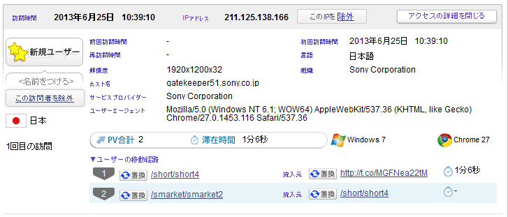 とうとう、と言いますか、やっと来たと言いますか、このブログにソニーがやって来ました。すいません、間違えて勤務先からアクセスしてしまいました(汗