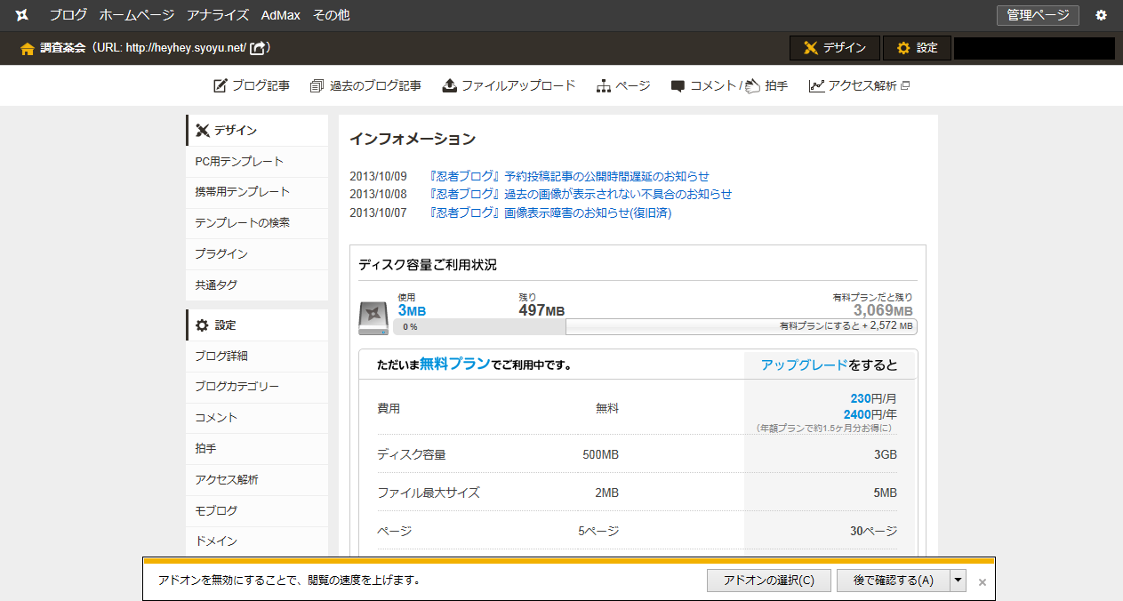 まず、ブログの運営ページに行ってください。